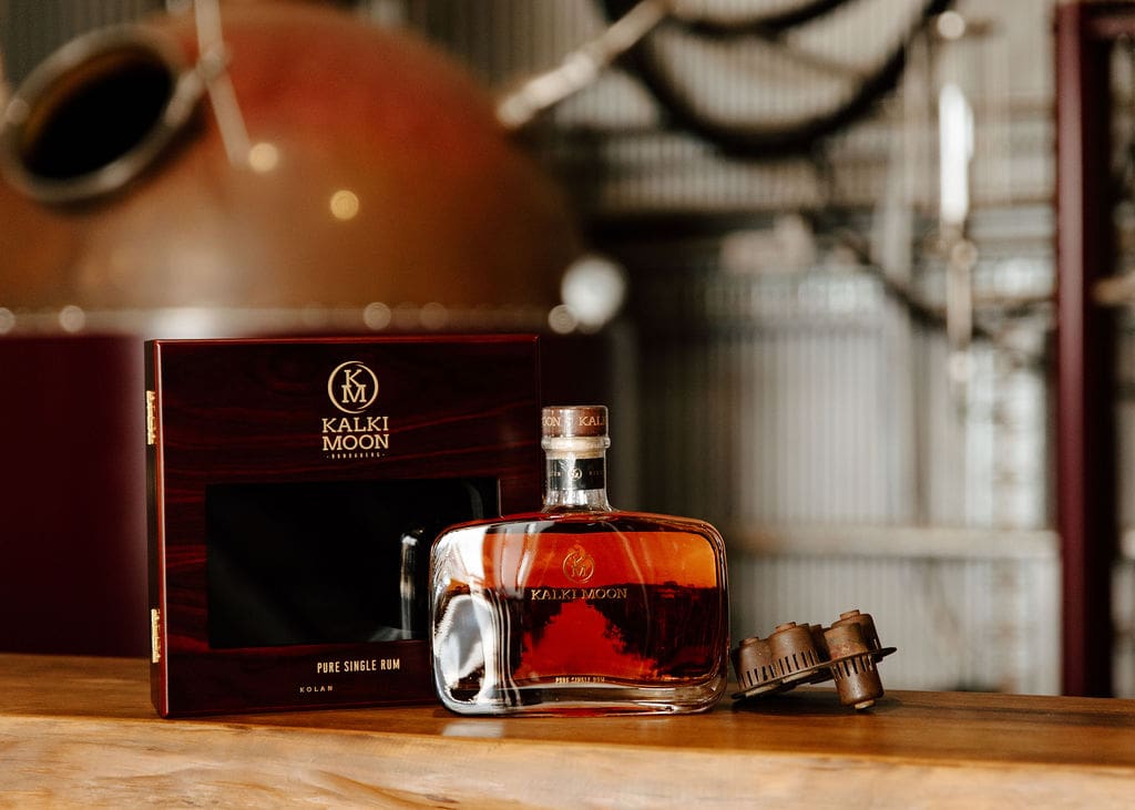 Made using Molasses, Water & Yeast. Before being double pot distilled at Kalki Moon Distillery. Then aged for 5 years 5 months in a single French Oak ex Australian Port.